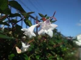 小さな花。花言葉は「謙遜・強運」。ー校舎北側のアベリアー