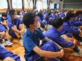 〇10月18日(月) 修学旅行前日、結団式が6時間目に行われました。髙澤校長先生から、実際に京都、奈良に行くことができる良さを生かして長野県と比べながら学習して来てほしい、というお話を頂きました。本当に「行くことができる」ことにまず感謝ですね。京都・奈良の人々や空気を感じ取り、そして十分に仲間の存在を感じ取ってほしいと願っています。旅行後の成長した姿が楽しみですね。