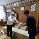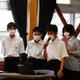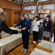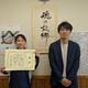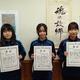美術班がデザインしたパネルや一つ一つの石を入れた袋のデザインも紹介され、生徒会の生徒3名が代表して受け取りました。