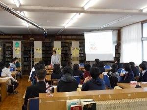 図書館の利用時間や利用方法などについて司書の先生より詳しく説明をしていただきました。