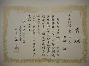 過日に行われた平成二十七年度長野県男子ジュニア体重別選手権において、本校高校3年生の菊池凌くんが個人三位の成績を修めました。おめでとうございます!