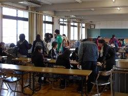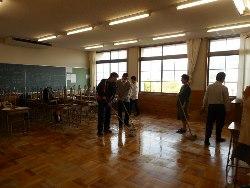 写真は、多目的教室にて行われた文化班10班と弓道班の班結成の様子です。