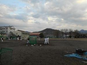 写真は、グラウンドで活動する野球班、サッカー班の様子です。