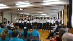 中学2年生は、歓迎セレモニーに参加し、イングリッシュキャンプでALTの先生に教えていただいた「Don't Stop Believin'」と、フィオナ先生に教えていただいたオーストラリアで有名な「Kookaburra song」を演奏しました。オーストラリアの高校生も一緒に口ずさんでくださり、一緒に楽しむことができました。同年代の外国の生徒と交流することができた貴重な時間となりました。