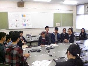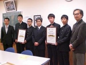 放課後、横澤先生が指導をしている「データビジネス創造コンテスト」「科学の甲子園」の参加者たちに秋山先生から賞状を渡していただき、その後生徒たちと話をする時間をつくっていただきました。