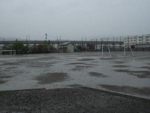 昨夜からの雨が上がることなく、グラウンドの使用もできない状況を勘案し、残念ながらマラソン大会を中止しました。前日や早朝から準備をしてくれていた補助員の生徒たちや、この大会にかけていた生徒たちには大変申し訳なく思いながら、苦渋の選択をしました。