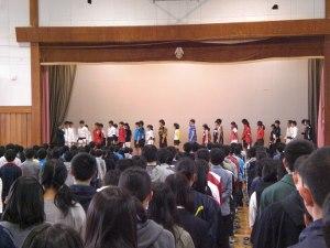 競技によっては北信大会が始まります。そこでゴールデンウィークを前に、それぞれの班の2名を代表者として壮行会を開きました。