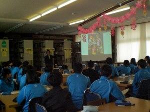 図書館司書の先生から、図書の借り方・返し方・予約の仕方・他の図書館から取り寄せられることなどを説明をしていただきました。