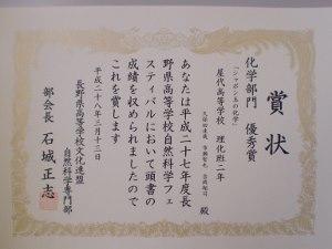長野県高等学校自然科学フェスティバルにおいて入賞しました。