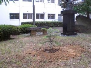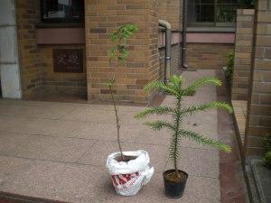 本校OBで東北大学名誉教授・信州大学繊維学部特任教授の小林長夫先生から、お申し出をいただき、メタセコイアの一種で非常に珍しいアラウクレア(和名 ナンヨウスギ)の苗とメタセコイアの苗をいただきました。