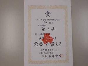 標記大会において優秀な成績を修めました。監督の前島先生が悔しい敗戦とおっしゃっていました。上位大会では是非うれしい勝利を勝ち取るように祈っています。