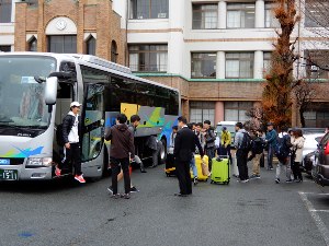 写真は、同窓会事務局長徳永先生より激励していただいている所です。