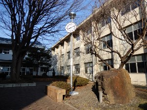 卒業記念品には、生徒昇降口から入ってくると時間がわかるように、中庭に時計を頂きました。