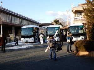 担任の先生に元気に挨拶をしながらバスを降りていました。