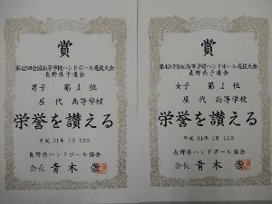 1月13日までに行われた標記長野県予選会で、男女共に1位になり、2月始めに新潟県柏崎市で開催される北信越大会へ出場します。