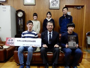 12/28のハトニワで標記大会での宮本君・鎌田君の入選をご報告しましたが、今回は渋谷君たちが12/22~24に東京で行われた中央審査会での発表結果を学校長に報告しました。