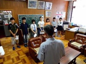夏休み明けに、学校長に総文祭の様子と結果を、代表の宮本君と顧問の柳沢先生が報告しました。学校長からは、さらに研究を後輩へつなげていってほしいと要望がありました。
