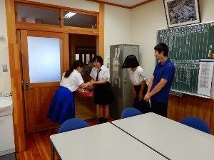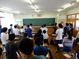 明日は、中学生体験入学です。明日も暑さが予想されますので水分補給と暑さ対策をお願いします。体調が悪くなったらすぐに近くの職員に申し出てください。