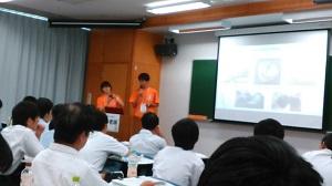 理数科説明会(希望者)では、全体説明と理数科3年生と1年生の研究発表を行いました。