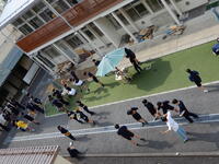 午前中は,日本語の授業を選択しているバディとともに,色々な授業を受けに行きました。この研修旅行の中では初めて,友達と離れて行動しました。