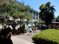 本日の朝食は6:30(日本では4:30)からでした。体がまだ時差に慣れていないので早朝からの朝ごはんは大変でしたね。なんとか全員集合できて,地下鉄でWENONA高校に向かいました。
