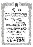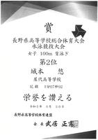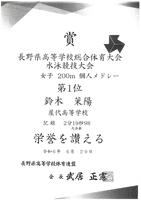 鈴木茉陽(2年3組) 女子50m自由形:第1位、女子200mバタフライ:第1位[大会新]、女子200m個人メドレー:第1位