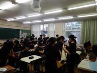 緊張感がありつつも、日本の授業に溶け込んでいました。ウェノナ校はチャイムがないそうなので、学校のチャイムに驚いていました。