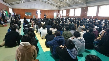 3年生 センター試験壮行会 投稿日時 : 2020/01/17 システム管理者 カテゴリ:2020_01 明日、明後日はセンターです。 今日は、三年生は1~3限まで特編授業を行い、4限に壮行会が行われました。校長先生、進路主任の提坂先生、学年主任の三井先生からの激励の言葉をいただきました。最後に、応援団を中心に互いに応援しあう場面もありました。 また、 壮行会が始まる前の休み時間に、中庭で1・2年生の応援団が三年生の教室がある一棟に向かってエールを送りました。 皆が応援しています。 これまでの頑張りを発揮できるよう頑張ってきて下さい!