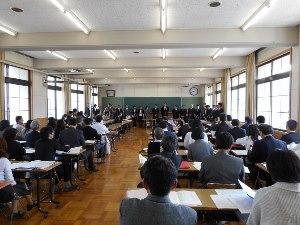 新任式の後には始業式が行われ、校長先生、生徒指導係の先生のお話に続き、担任、副担任の先生の発表がありました。
