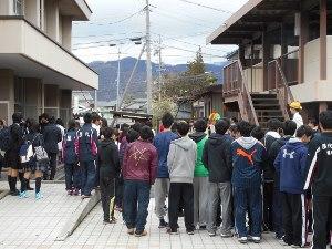 入学式が終わった後には、生徒玄関前にて2、3年生の先輩たちによる各班活動の班勧誘が行われており、たいへんにぎわう様子がみられました。
