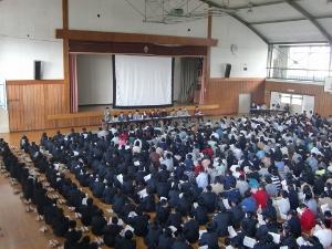3年生のみなさんは、今日のお話をしっかりと心にとめるとともに将来の目標に向けて、授業や班活動、生徒会活動など何事にも精一杯取り組んでいってほしいと思います。
