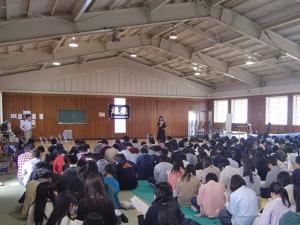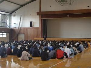 生徒のみなさんは、真剣な表情で静かに講師の先生方のお話に聞き入っており、交通安全や薬物には十分に注意しなくてはならないことが再認識でき、よき機会になったように思います。