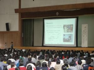 先生は、海外の大学との共同研究や論文、講演では必ず英語が使われるため、科学者として科学を扱うためには、英語は話せなくてはならないことを強調されていました。