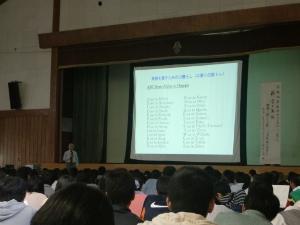 生徒のみなさんは、米国研修報告、講演をともに真剣な表情で聞いており、とても興味を持った様子がうかがえました。