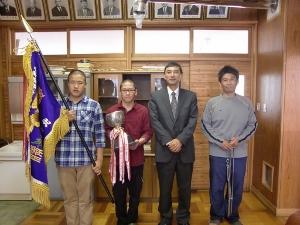 校長室にて3年生が学校長に優勝報告をしました。
