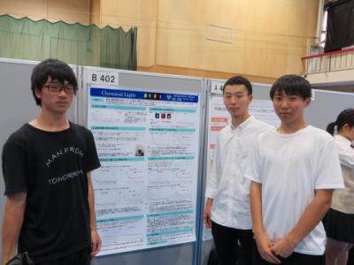 課題研究や理化班の研究から3グループが応募して「水酸化ナトリウムを用いたPETの加水分解」がポスター賞を受賞しました。
