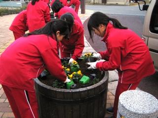 11月10日に、附属中学校花壇と屋代高校前駅花壇の花の植え替えを行いました。