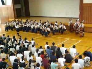 その後、ギターマンドリン班のコンクールでの演奏曲を聴きました。暑さの中、心がさわやかになりました。