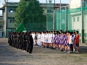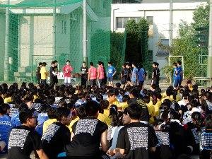 天候にも恵まれ、1日目がスタートしました。感謝の気持ちを常に持ち、熱中症と怪我に注意するように指示があった後、各クラス円陣を組み競技会を開始しました。
