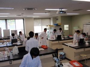 研修は、4つのコースに分かれて行われ、電子顕微鏡観察、バイオテクノロジー、コンピュータグラフィックスによるアニメーション作成、二足歩行ロボットの歩行プログラム作成の各実習を行いました。