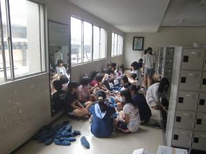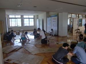 まずはじめに、体育館にて各係長から全体への説明や注意事項の連絡があり、その後は、各係、クラスの片付け作業が一斉に始まりました。