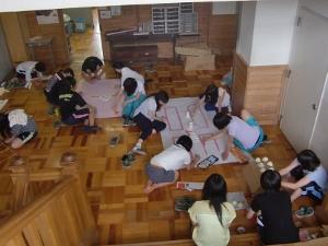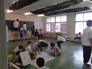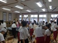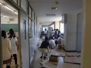 授業・清掃が終わると各クラスにて一斉に段ボール紙を切り貼りして制作物を作成したり、教室にてダンス練習や劇の練習をしたりして、楽しそうで賑やかな様子がうかがえました。