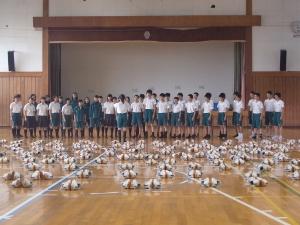 開祭式に先立ち、水泳班、野球班の壮行会が行われ、全校生徒による健闘を祈ってのエールが送られました。