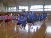 その後、ハト1グランプリが雨天により当初の予定を変えて体育館にて行われ、クラス対抗による大縄跳びが実施されました。