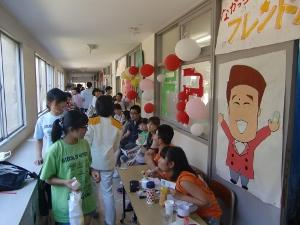 クラス準備の時間となると机やイス、教壇などが整理して片付けられ、これまで準備してきた制作物の展示や飾り付け作業が一斉に始まりました。