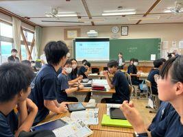 9月9日(月)3年生が、高校3年生の英語の授業に参加しました。Convenience stores should be closed late at night.(コンビニエンスストアの深夜営業を禁止すべきだ)という議題について「賛成」「反対」に分かれてのディベートを行いました。環境面や安全面、ライフスタイルなど、様々な角度から短時間で自分の主張をまとめ、堂々と発する高校生の姿に、「3年後(自分は)あんな風にしゃべれるようになっているかな」「難しい単語がたくさんでてきた」と圧倒された様子の3年生でしたが、先輩方が英語をペラペラと話すカッコいい姿はよい目標になり、刺激にもなったようです。