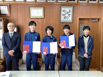 若月悠真さん(高校1年理数科)、湯本シンさん(高校2年理数科)、宮澤希成さん(高校1年普通科)の3名がチームを組み、第34回日本数学コンクールに応募し、優秀賞を受賞しました。