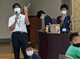 〇7月28日(木) SSH「科学に親しむ教室」が稲荷山公民館で行われました。今年度は高校生に中学科学班が加わり、参加した小学生と一緒になって科学を楽しみました。小学生のみなさんへの説明は、簡単そうに見えて実は一番難しいかもしれませんね。中学生が見えている景色、聞こえている音、考えたことは、小学生と同じかどうか表情や反応をみて考えないといけません。A先生の話によると、高校生の教え方がとても上手で、参加した中学生にとっても高校生の姿から学ぶことが多かったようです。科学班のみなさんはこれから地域の小中学生と一緒に学ぶ場があります。そのときの参考になりますね。