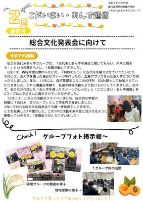 1学年、地域探索学習の「古代米・あんずグループ」が作成した通信の最終号が発行されました。