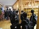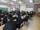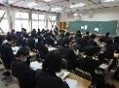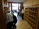 入学式に備え、一年生の下駄箱を掃除する2年生。